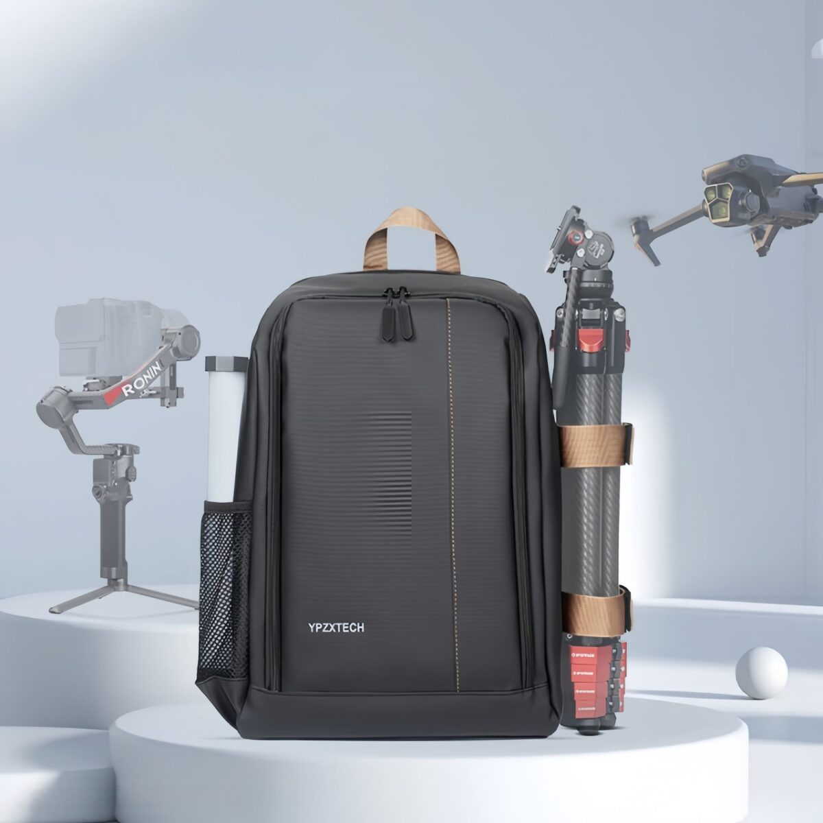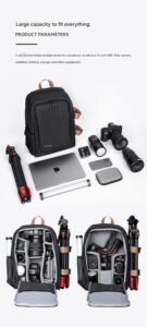 It can accommodate multiple lenses for one device, as well as a 16-inch MBP, iPad, camera, stabilizer, battery, charger and other equipment.